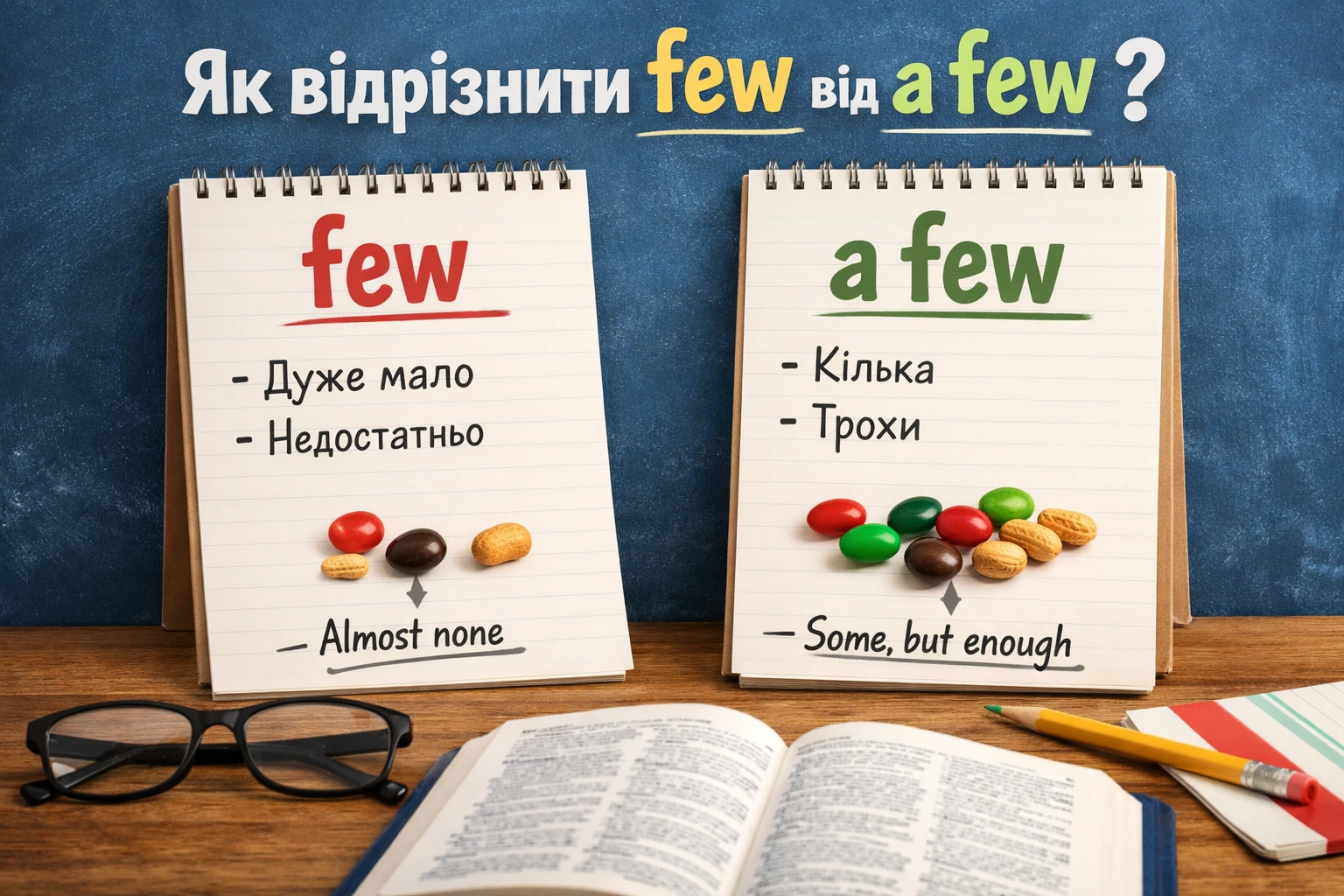 Ми рухаємося далі. У наступній частині розкладемо тему few vs a few на граматичні конструкції, типові комбінації та підсилювачі, які створюють найчастіші пастки.